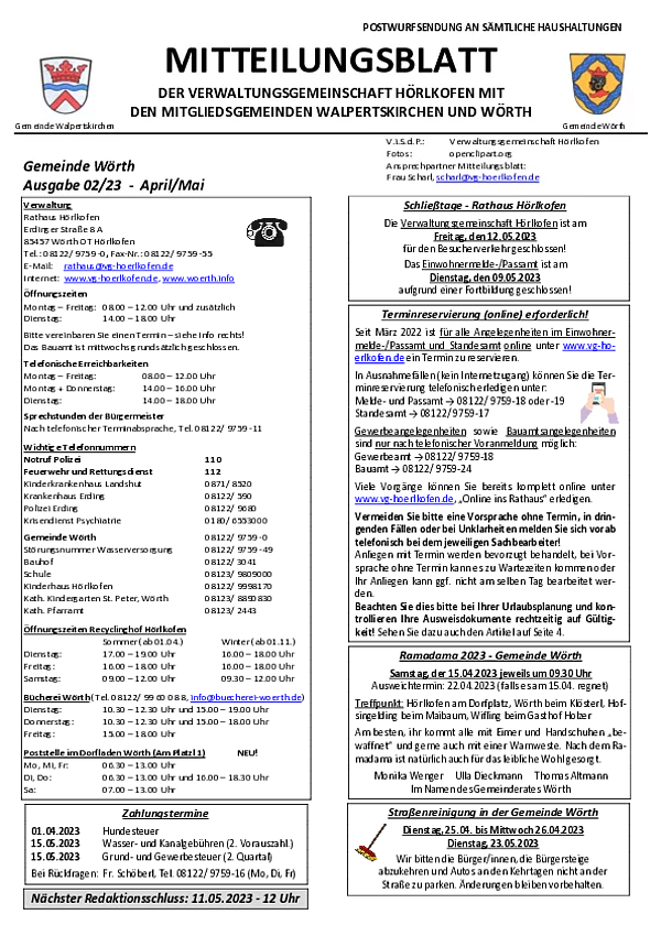 Mitteilungsblatt Gemeinde Wörth 02/2023 (April/Mai)