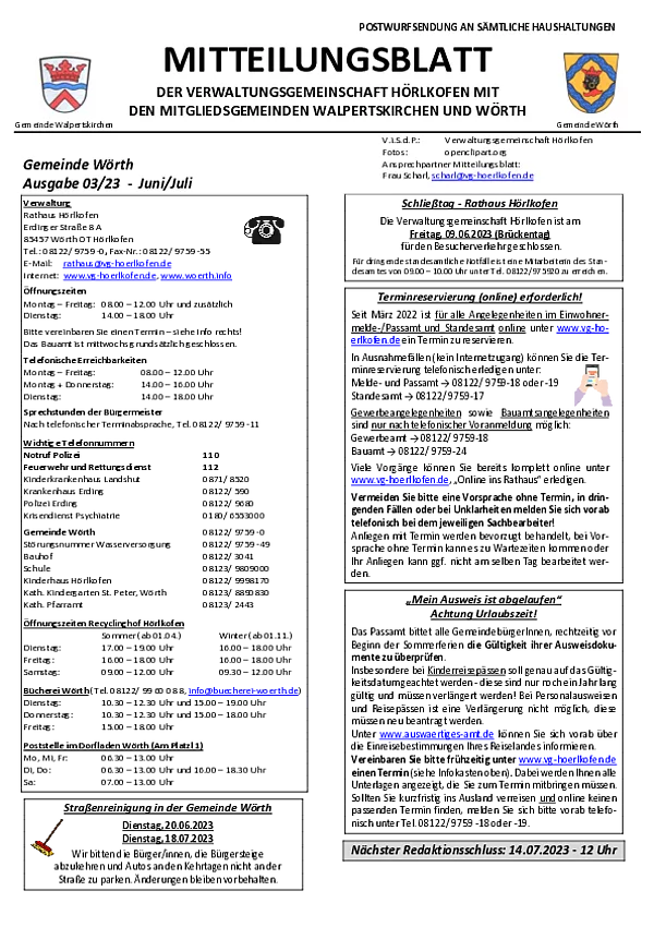 Mitteilungsblatt Gemeinde Wörth 03/2023 (Juni/Juli)