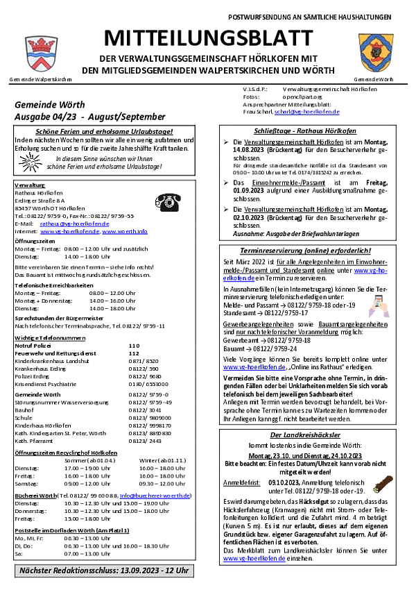Mitteilungsblatt der Gemeinde Wörth 04/2023 (August/September)