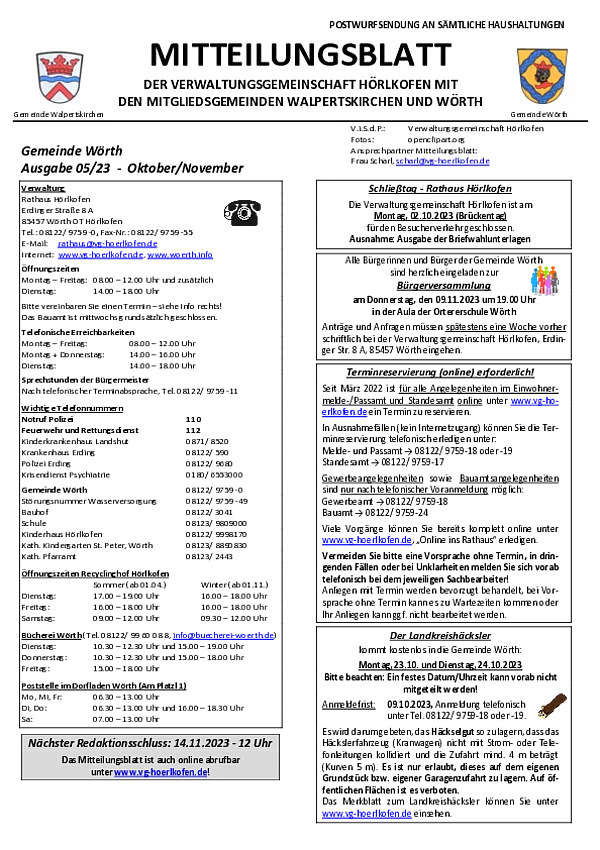 Mitteilungsblatt der Gemeinde Wörth 05/2023 (Oktober/November)