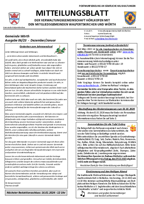 Mitteilungsblatt der Gemeinde Wörth 06/2023 (Dezember/Januar)