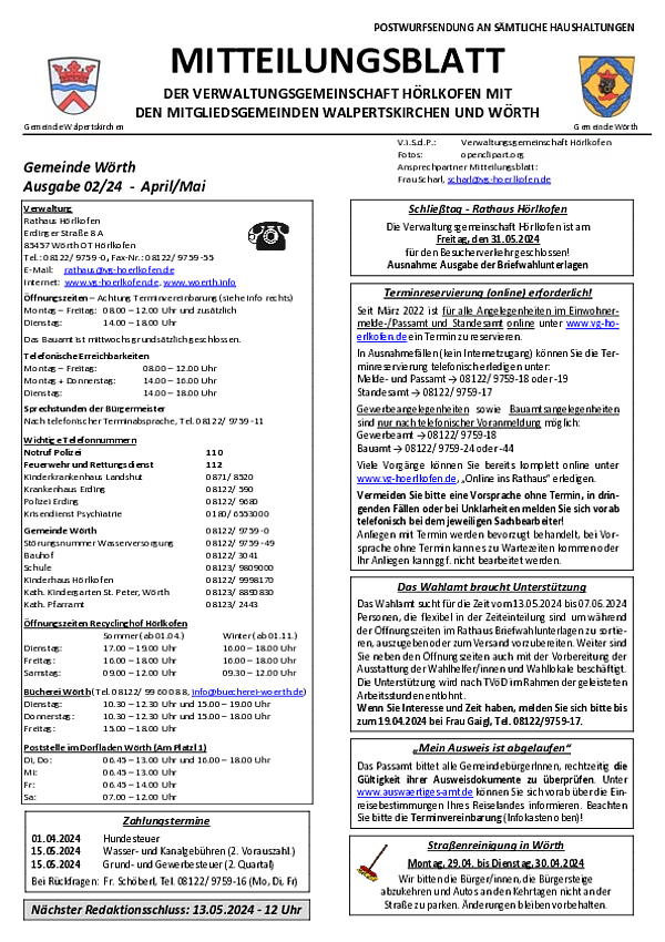 Mitteilungsblatt Gemeinde Wörth 02/2024 (April/Mai)