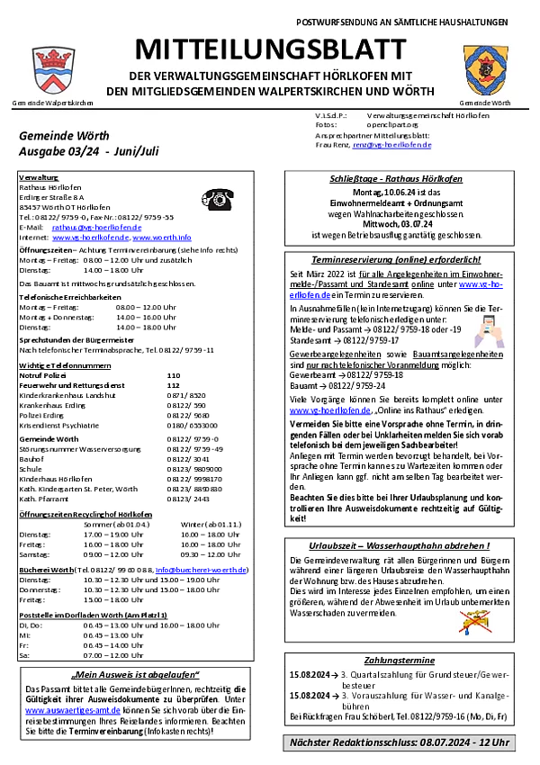 Mitteilungsblatt Gemeinde Wörth 03/2024 (Juni/Juli)