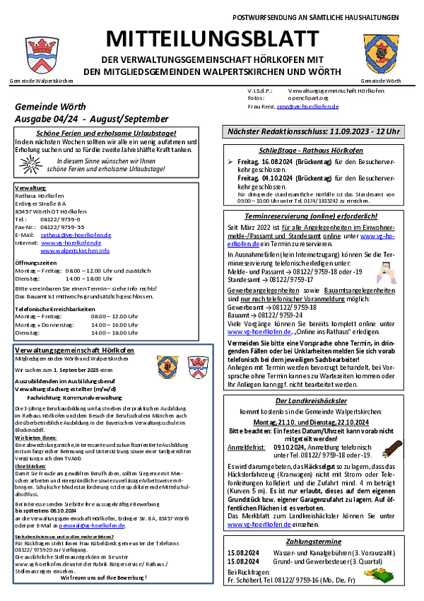Mitteilungsblatt Gemeinde Wörth 04/2024 (August/September)
