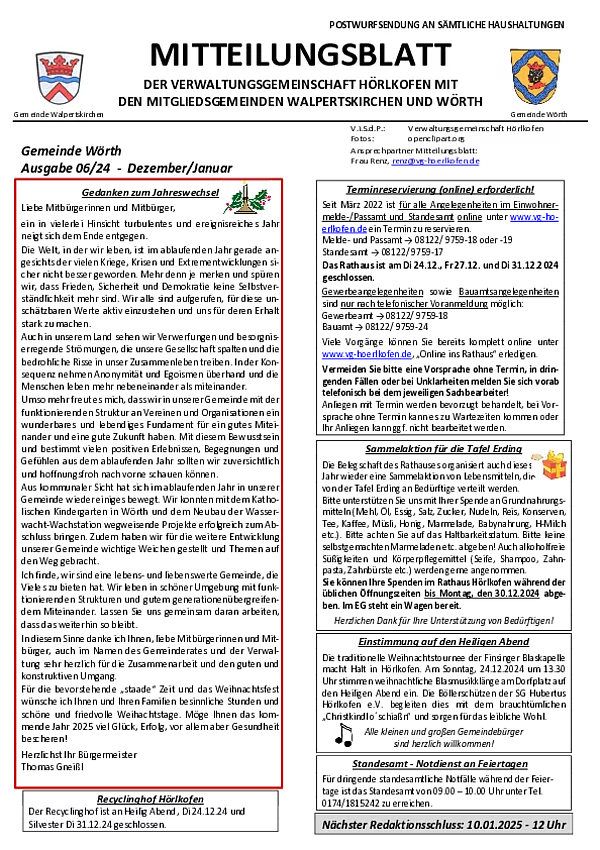 Mitteilungsblatt Gemeinde Wörth 06/2024 (Dezember/Januar)