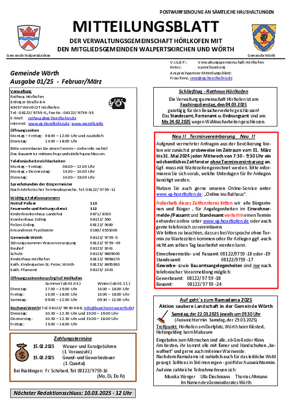 Mitteilungsblatt Gemeinde Wörth 01/2025 (Februar/März)