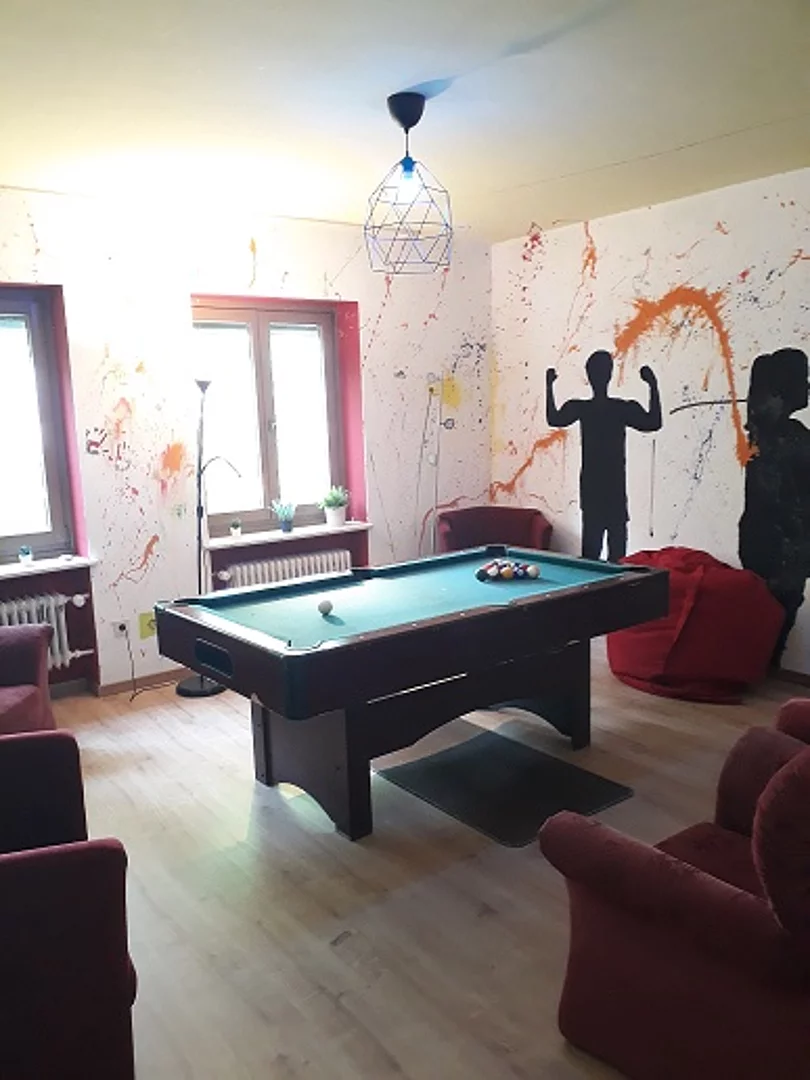 WO kannst du Billard, Tischtennis, Darts, Badminton, Kicker, Fußball, Playstation, Karten, Monopoly, Gitarre, Keyboard und Cajon spielen, Basteln, Malen, Kochen, Backen, Blödsinn machen oder einfach nur chillen? Natürlich im Jugendtreff!